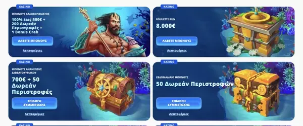 | Weekly Reload | 50 FS σε επιλεγμένο slot | Επιλεγμένο παιχνίδι· δείτε τη σελίδα promo για ημερομηνίες |