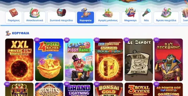 Η βιβλιοθήκη μας έχει χτιστεί γύρω από την ποικιλία. Μπορείτε να επιλέξετε από κουλοχέρηδες, επιτραπέζια παιχνίδια, live casino, τζάκποτ, αθλητικό στοίχημα, eSports, bingo και γρήγορα παιχνίδια όπως crash τίτλοι. Περιλαμβάνουμε επίσης εξειδικευμένες επιλογές όπως μπακαρά, μπλάκτζακ, βίντεο πόκερ, κίνο, ξυστά και ειδικά παιχνίδια τζάκποτ. Συνολικά, φιλοξενούμε περίπου 5.000 παιχνίδια, ώστε να εξερευνήσετε διαφορετικά στυλ χωρίς να χρειάζεστε πολλούς λογαριασμούς.